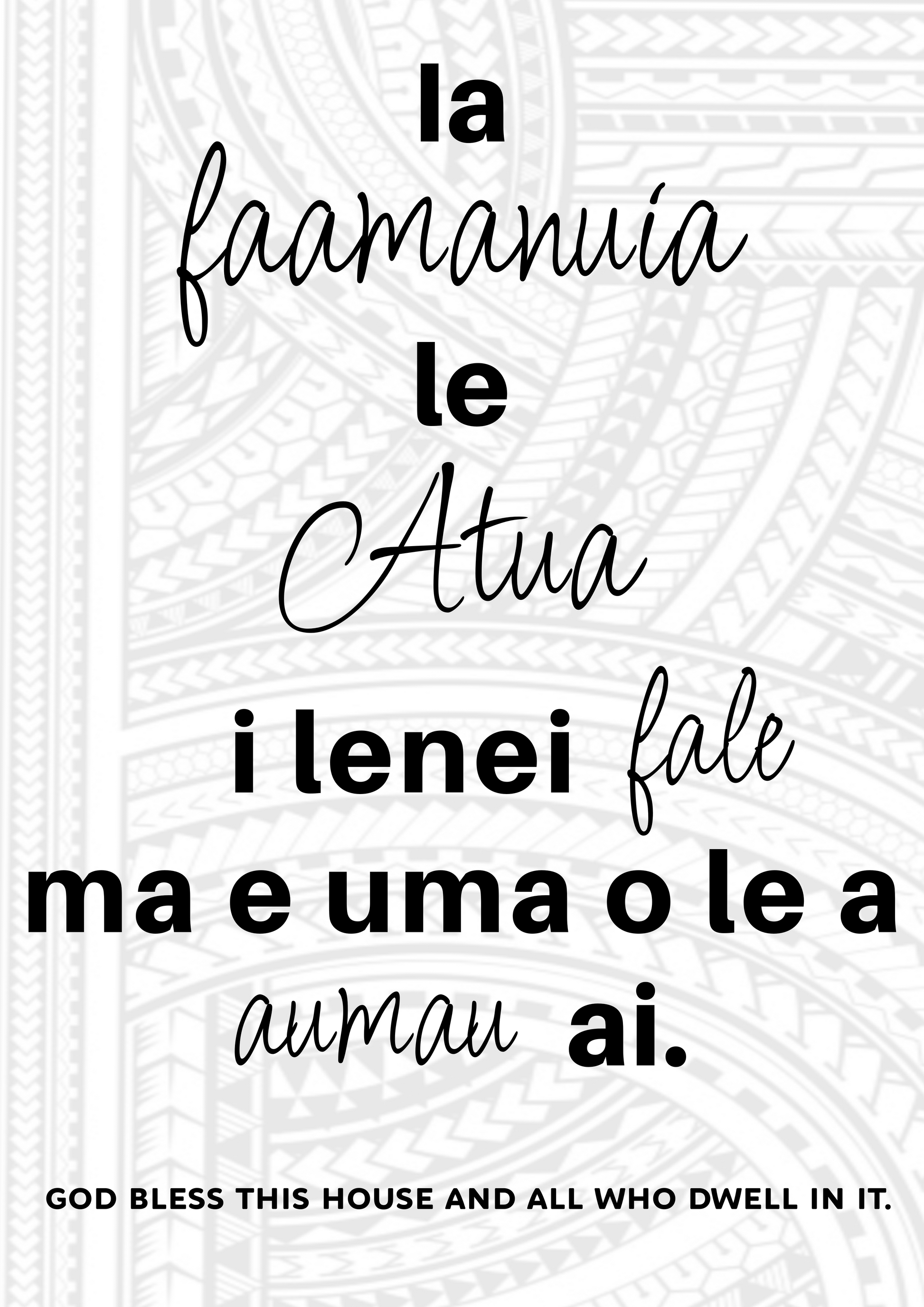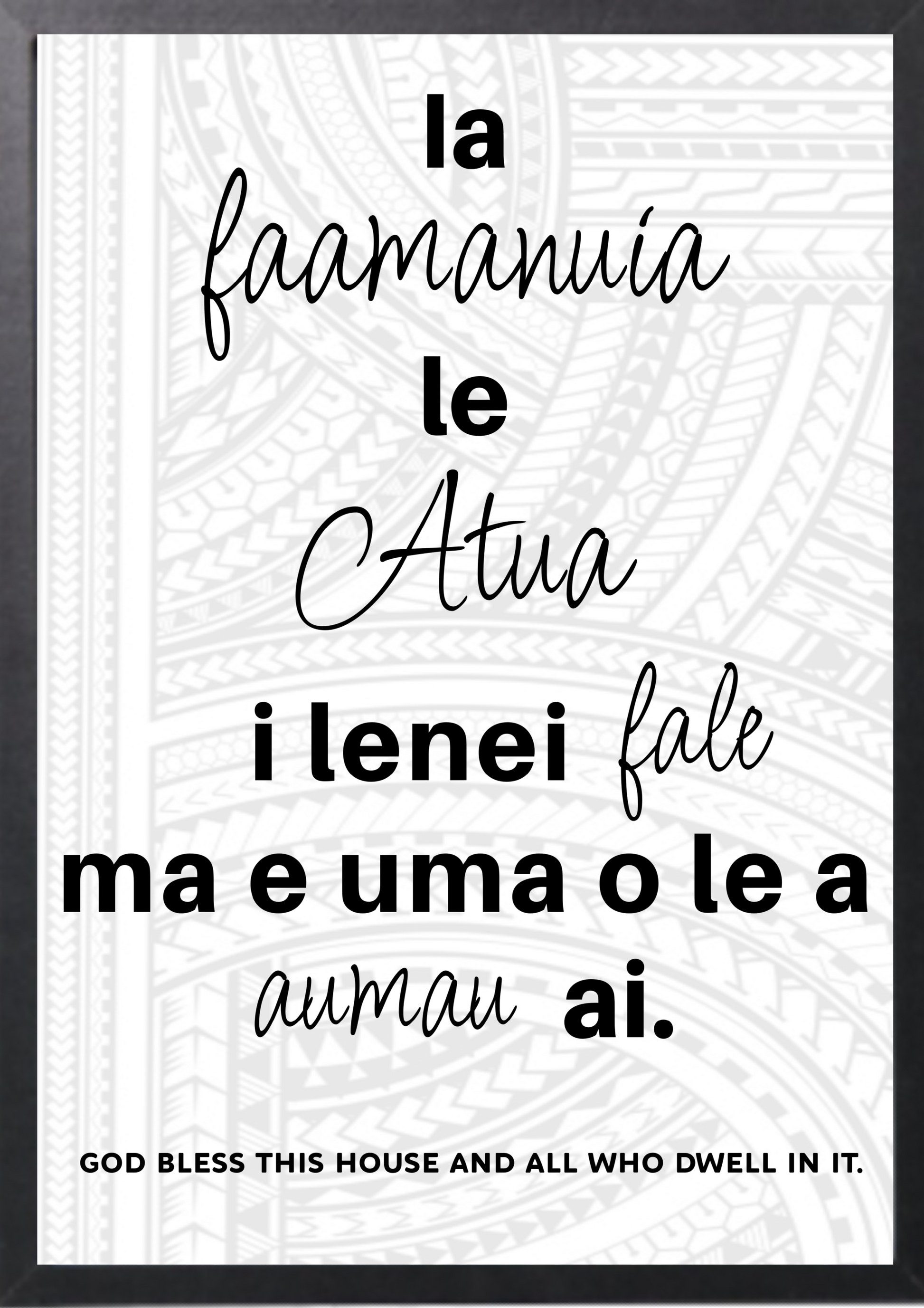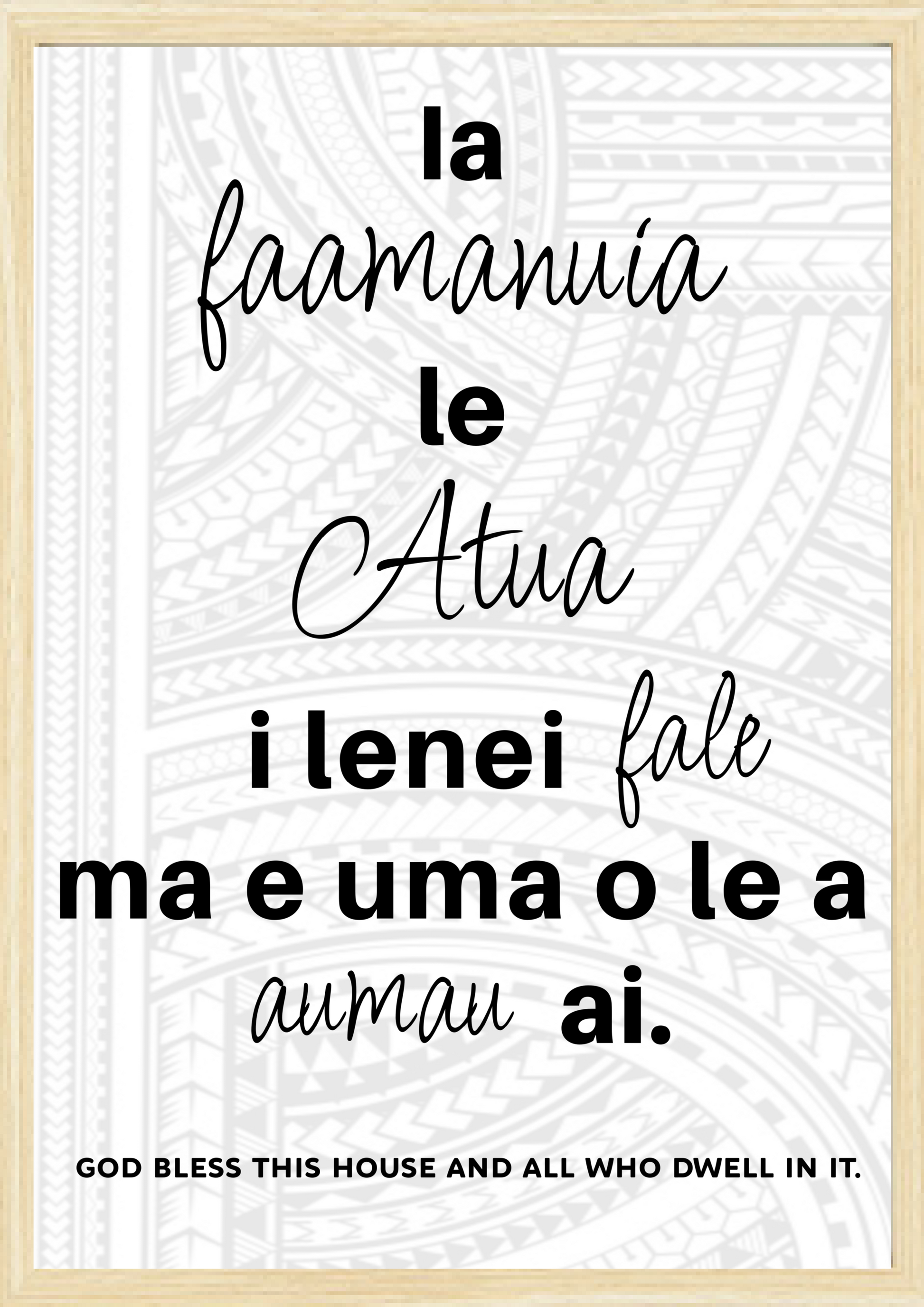 Blessed this house and all those who dwell in it Samoan translation in A3 picture frame.